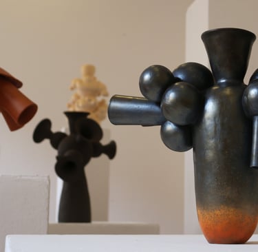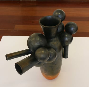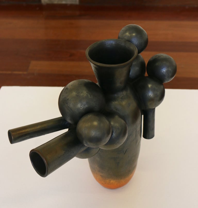 Untitled vase, 2025, Reduction fired earthenware with red clay Terra Sigillata. 36 x 34 cm.