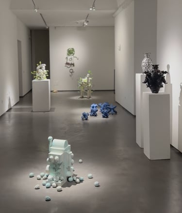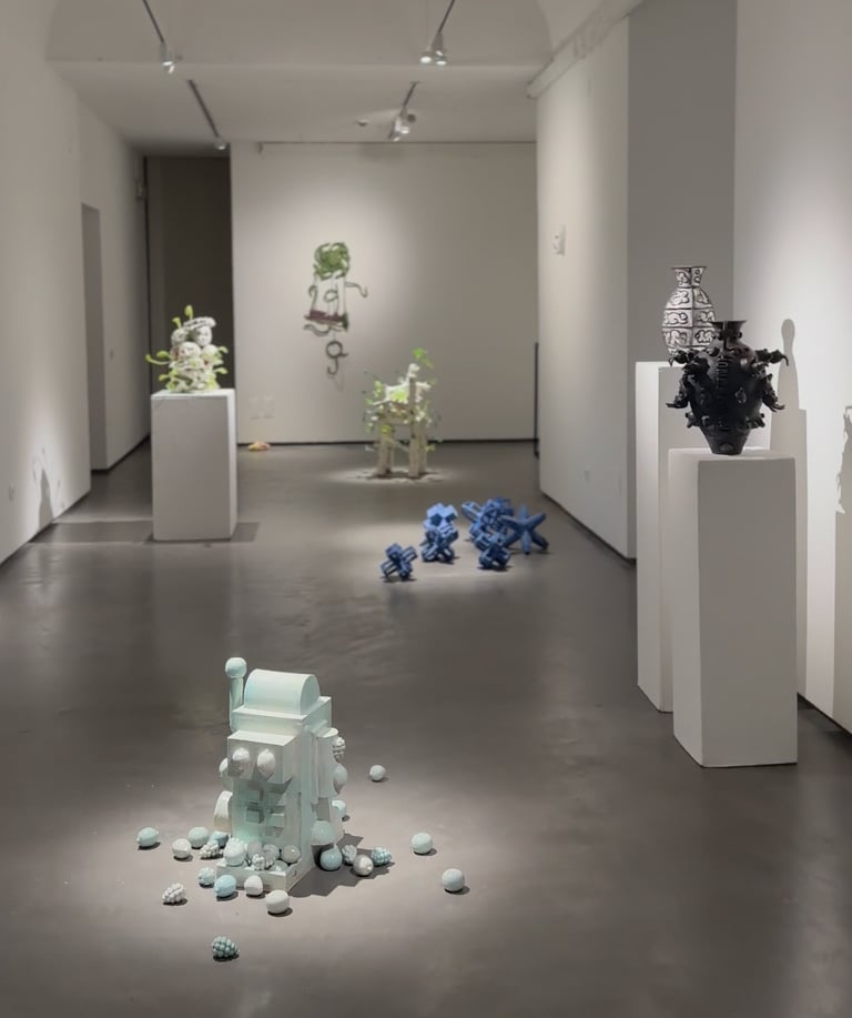 Exhibition view from the paths we cross (2024). Art works in the back by Dafni Klagkou.