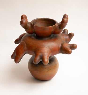 Untitled vase, 2025, Reduction fired earthenware with red Terra Sigillata. 40 x 38 cm.